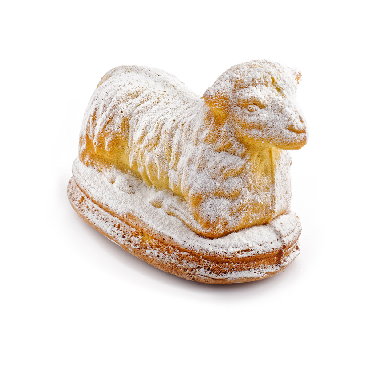 Le traditionnel agneau en génoise moelleuse cuit à l’ancienne dans un moule en terre.