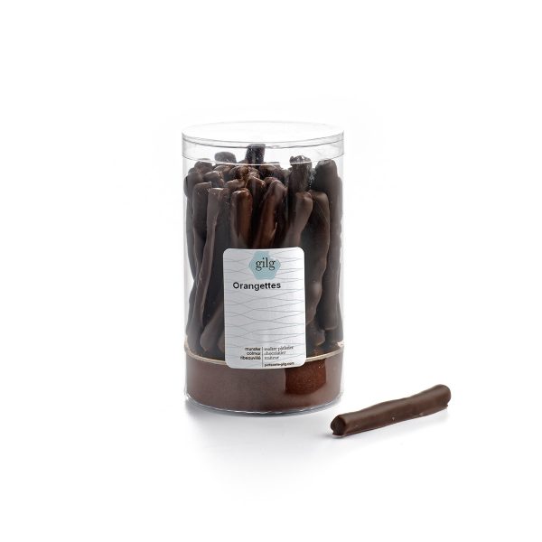 De fines aiguilles d’oranges confites enrobées dans du chocolat noir.
