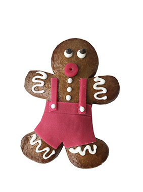 Un pain d’épices en forme de mannala (petit bonhomme) alsacien. Décor de glaçage, glace royale et pâte d’amandes. Réalisé dans le plus pur respect des recettes traditionnelles.